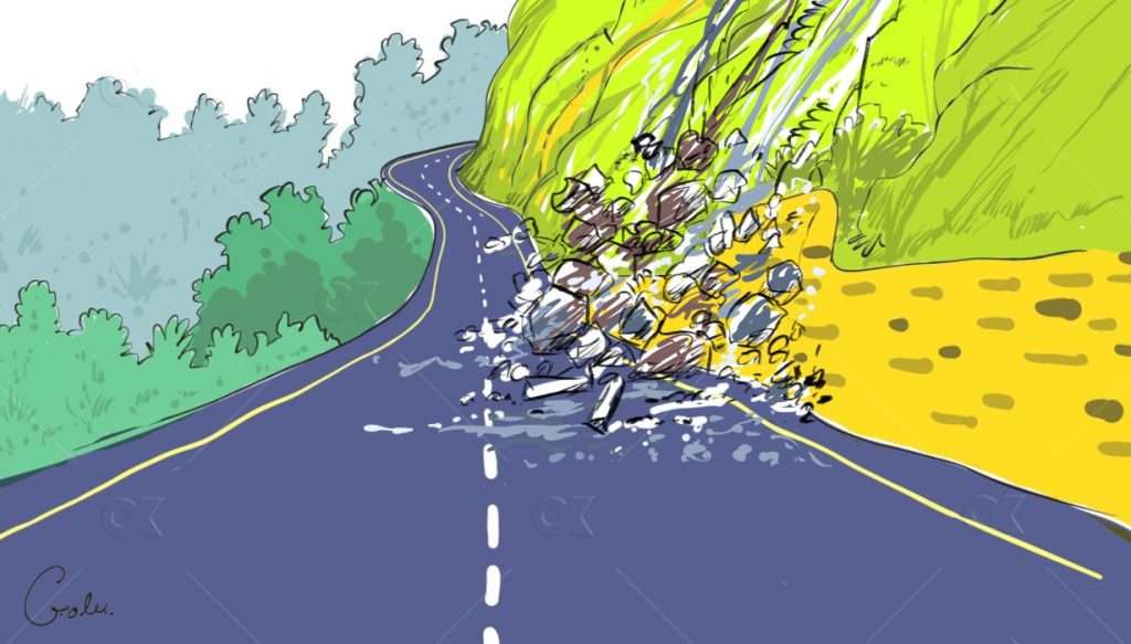बाटोमा लामबद्ध भएर सवारी साधन गुडिरहेका बेला सबैभन्दा पछाडि रहेको बसमा अचानक माथिबाट ठूलो पहिरो खसे पनि पल्टाउन भने सकेन ।