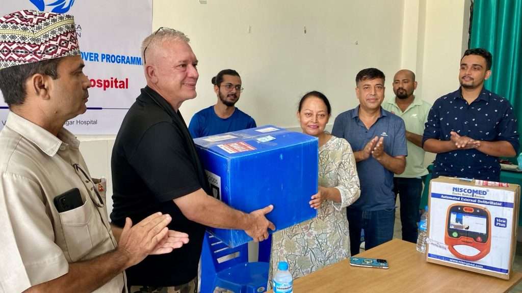 बिर्तामोड, असोज ५ ।। टेरी मिकेस्का फाउण्डेसन टेक्सस अमेरिकाले बिर्तामोड नगरअस्पताललाई डिफिब्रिलेटर मेसिन हस्तान्तरण गरेको छ ।